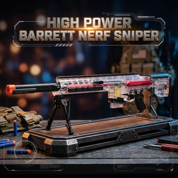 High Power Transparent Barrett Foam Dart Nerf Sniper Transparent Barrett Guns Overview The Baize 100s Sniper Rifle is a next generation Nerf Sniper crafted for enthusiasts who crave power, accuracy, and customization....
