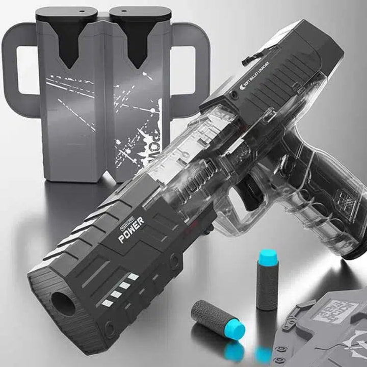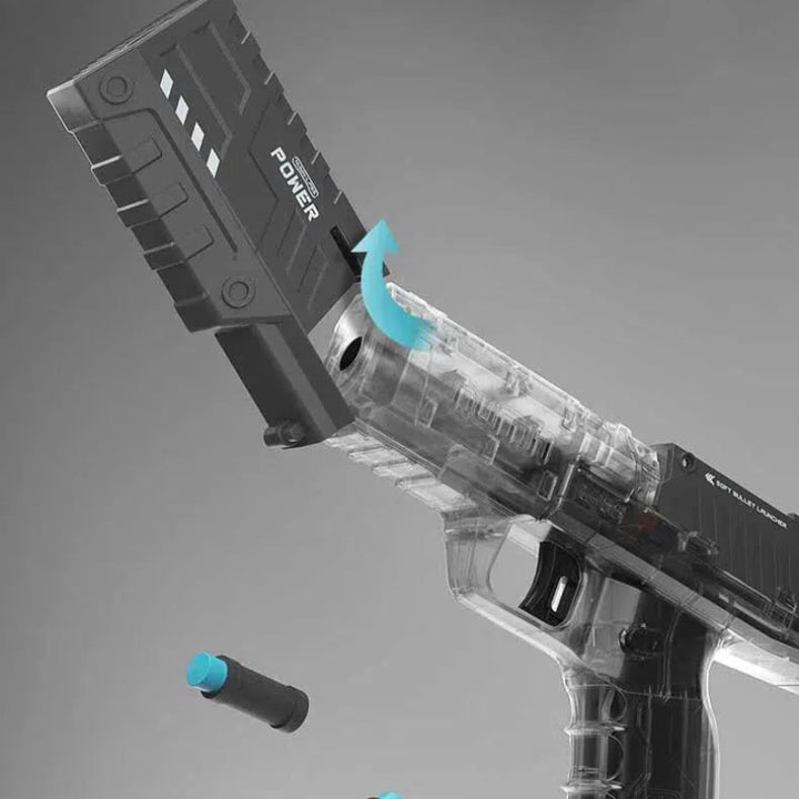 This Replica Glock Nerf Pistol is a toy gun that combines sci-fi design with high performance. The LP55 Nerf Gun is designed for players who like hands-on operation, pursue long-range shooting and cool appearance. Its transparent shell design not only makes the overall appearance more fashionable and modern, but also allows players to clearly see the internal mechanism, adding a sense of technology and visual impact. This nerf gun is suitable for all kinds of shooting games, competitive confrontations and role-playing, and has become a must-have for any toy gun enthusiast.