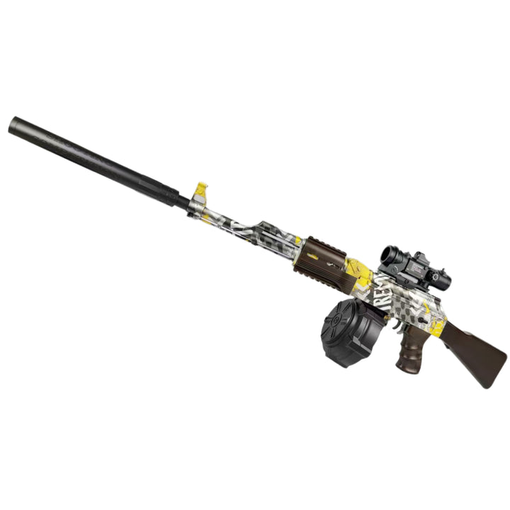 This AK47 Gel Blaster Rifle brings the intensity of the battlefield into your home. Whether you're in manual mode for precision shots or automatic mode for rapid fire, this AK47 Rifle Orbeez Gun delivers an electrifying performance. The dual magazine setup, designed with plastic drum mags, ensures extended combat without reloading interruptions. With built-in silencers and high precision sights, this Gel Blaster Rifle gives you the tools to dominate in any scenario. Crafted from durable ABS plastic, it feels as reliable as it performs. Embrace the role of a true “combat king” and get ready for the ultimate shooting showdown.