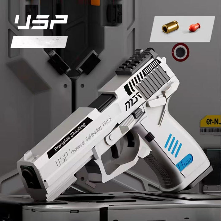 This Semi-Automatic USP Nerf Pistol perfectly combines classic pistol design with modern toy gun technology, bringing players a smooth shooting experience and visual impact. It supports empty chamber hang-up and semi-automatic burst functions, and can shoot quickly without manual loading, making the shooting process simpler and more efficient. Provide up to 5 cool skins to bring more choices to players and meet personalized needs.